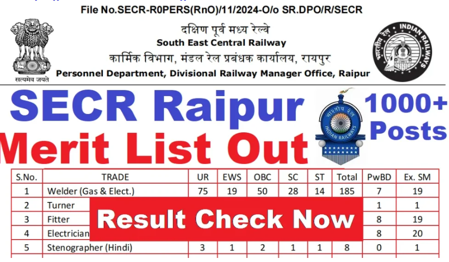 Railway SECR भारत सरकार के रेलवे विभाग में करियर की तलाश कर रहे युवाओं के लिए एक बेहद महत्वपूर्ण सूचना